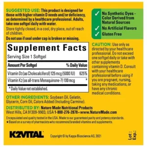 Nature Made Vitamin D3 K2, 5000 IU (125 mcg) Vitamin D (30 Softgels)