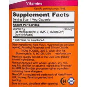 NOW Foods MK-7 Vitamin K-2 100 mcg (60 Capsules)