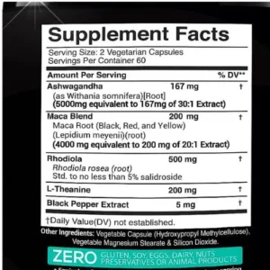 X Gold Health Ashwagandha & Maca Root Black Extract plus, Rhodiola Rosea & L-Theanine (120 Capsules)