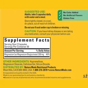 Nature Made Magnesium Glycinate 200 mg | 60 Capsules