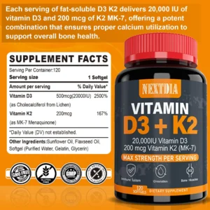 NextDia Vitamin D3 (20,000 IU) + K2 (200 mcg) – 120 softgels
