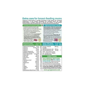 • 700mg calcium and 300mg Omega 3 DHA, as recommended by experts when breast-feeding