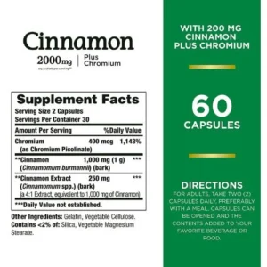 Nature’s Bounty, Cinnamon Plus Chromium, 2,000 mg, (60 Capsules)