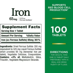 Nature’s Bounty Iron 65 Mg (100 Tablets)
