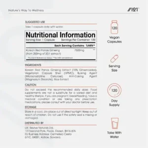 Korean Red Panax Ginseng 7500mg (120 Capsules)
