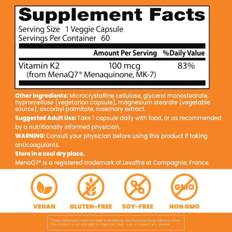 Contains MenaQ7®, the most bioavailable and researched form of Vitamin K2 (MK-7)
