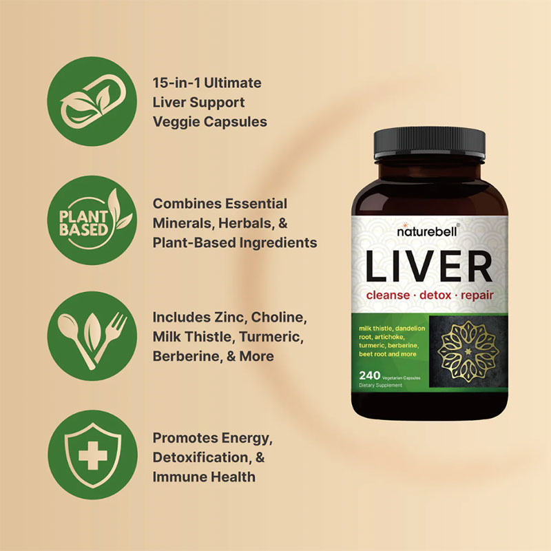 NatureBell Liver Cleanse Detox & Repair Supplement – 240 Veggie Capsules