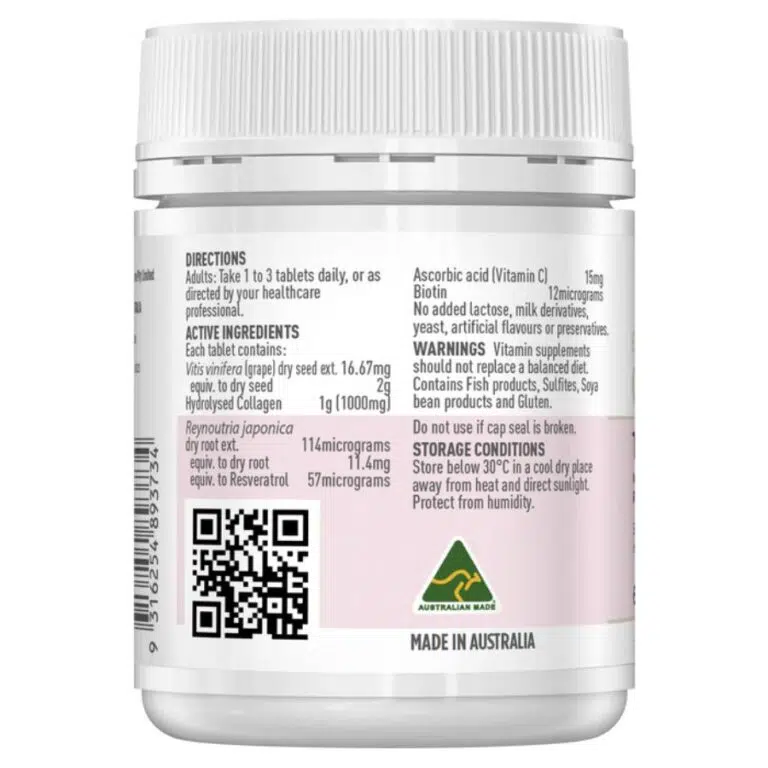 Each tablet is packed with high-quality ingredients that work together to reduce fine lines and wrinkles, improve skin firmness, and protect against free radical damage. Biotin supports healthy hair and nails, while Resveratrol delivers powerful antioxidant protection for a glowing, rejuvenated complexion.