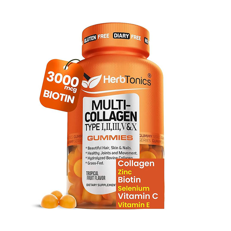 Enhance your hair, skin, and nails naturally with HerbTonics Multi Collagen Gummies Type 1,2,3,5 & 10 with Biotin for Hair Growth Skin Nails with Vitamin C Zinc for Men & Women 60 Gummies.