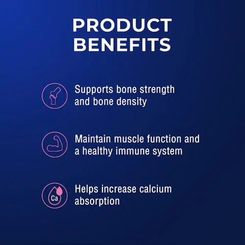 Calcium and Magnesium work together to strengthen bones and muscles, while Vitamin D helps improve calcium absorption and supports immune health. Zinc contributes to healthy metabolism and immune defense. It’s the perfect supplement for active lifestyles, aging individuals, or anyone looking to support their skeletal and immune systems.