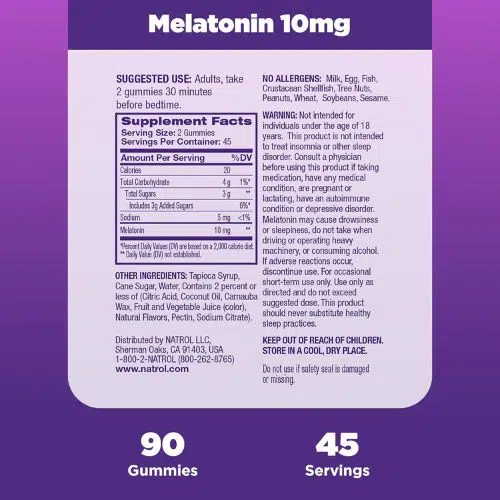 Whether you’re struggling with jet lag or daily sleep troubles, Natrol Melatonin Gummies provide gentle, non-habit-forming relief. Made with clean ingredients, they are free from artificial flavors, sweeteners, gluten, and gelatin—perfect for vegetarians.