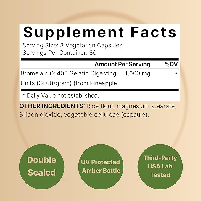 NatureBell Bromelain 1000mg Per Serving – 240 Veggie Capsules | Product Description