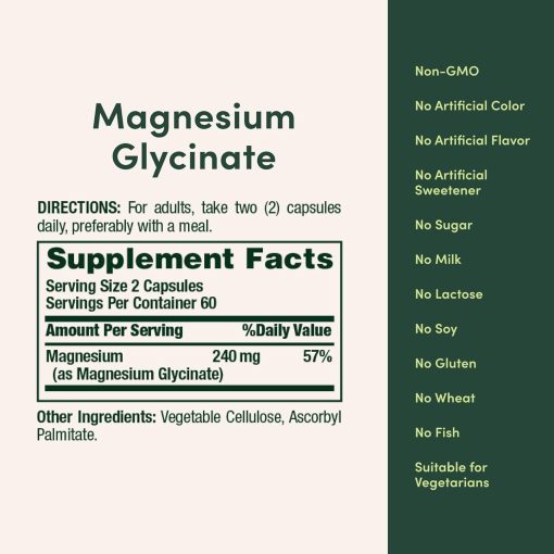 Nature’s Bounty Magnesium Glycinate (240 mg) High Absorption – 120 capsules