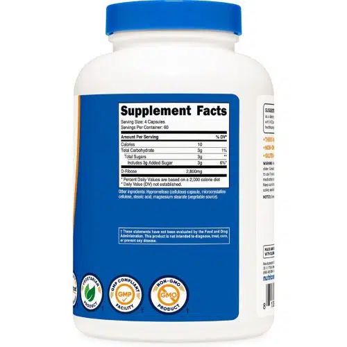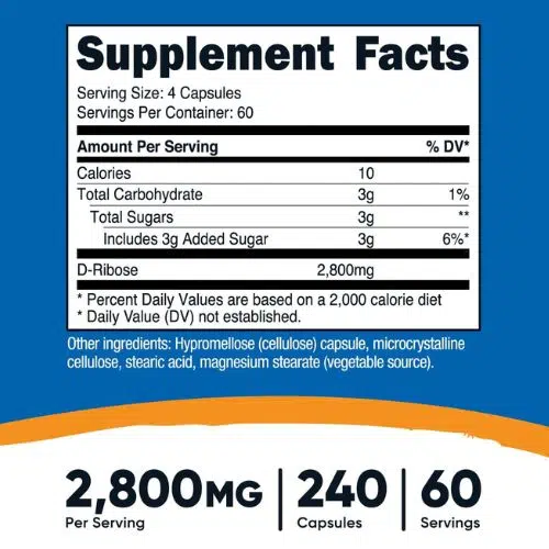 - 2800mg of D-Ribose Per Serving (700mg Per Capsule)