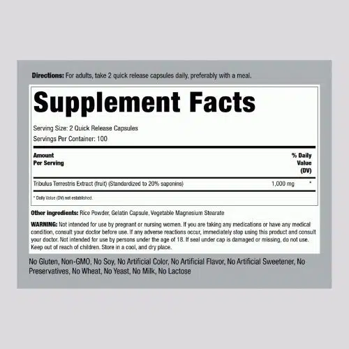 - 1000 MG of Tribulus Terrestris Extract per serving