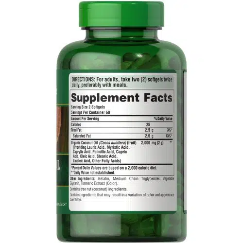 Each softgel contains 1000 mg of pure, cold-pressed coconut oil, providing a convenient way to enjoy the benefits of this superfood without the taste or mess. Ideal for those looking to incorporate healthy fats into their diet, Puritan’s Pride Coconut Oil helps fuel your body naturally.