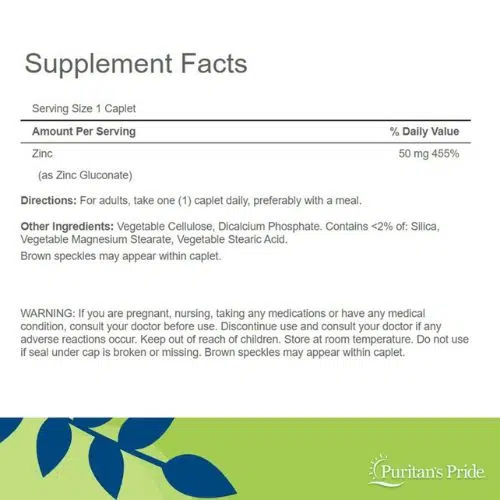 Each tablet delivers 50 mg of elemental zinc, making it ideal for those looking to maintain optimal health and strengthen their body’s natural defenses. Puritan’s Pride ensures top-quality ingredients, with a reputation for purity, safety, and value.