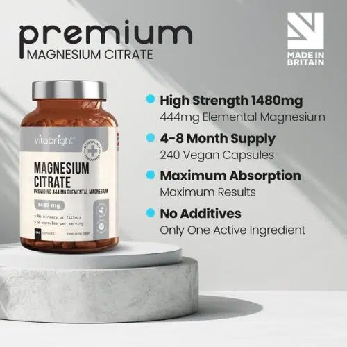Vitabright is a UK-based, GMP-certified brand known for its high-quality, vegan-friendly supplements. Each serving of this magnesium citrate provides superior bioavailability, ensuring better absorption and faster results compared to other forms.