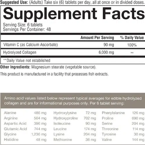 Take six (6) tablets daily, all at once or in divided doses, with water. For best results, use consistently as part of your daily health and beauty routine.