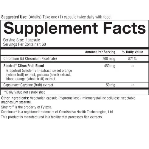 • Features Capsimax®, Chromax®, and Green Tea Extract