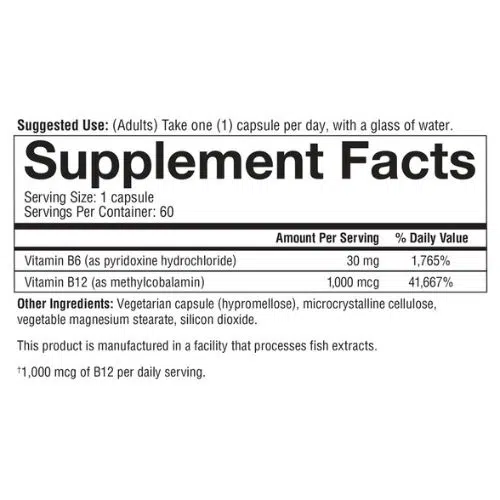 💯 We offer only Youtheory Vitamin B12 B6 1000 mcg (60 Capsules) authentic products, ensuring purity, safety, and effectiveness.